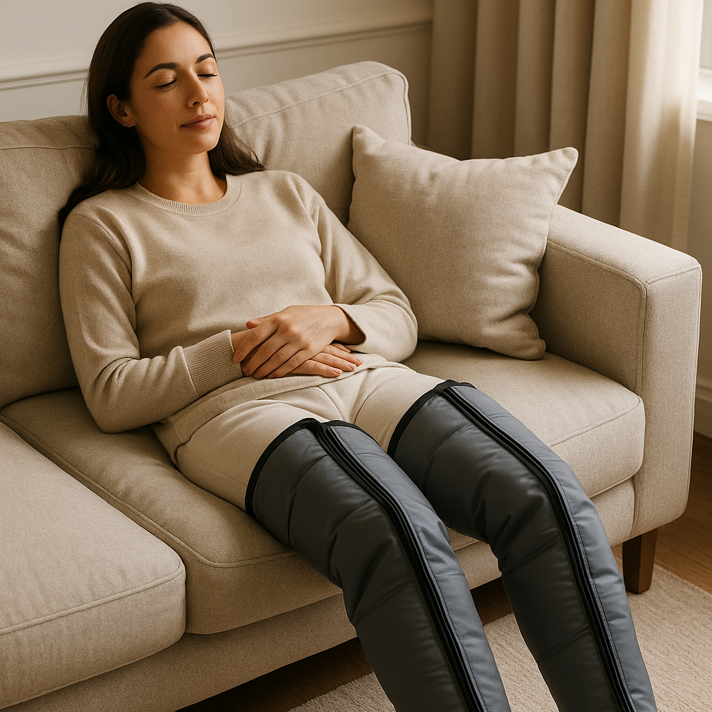 La pression douce stimule la circulation, soulage les tensions et redonne légèreté à vos jambes — dès la première utilisation.
